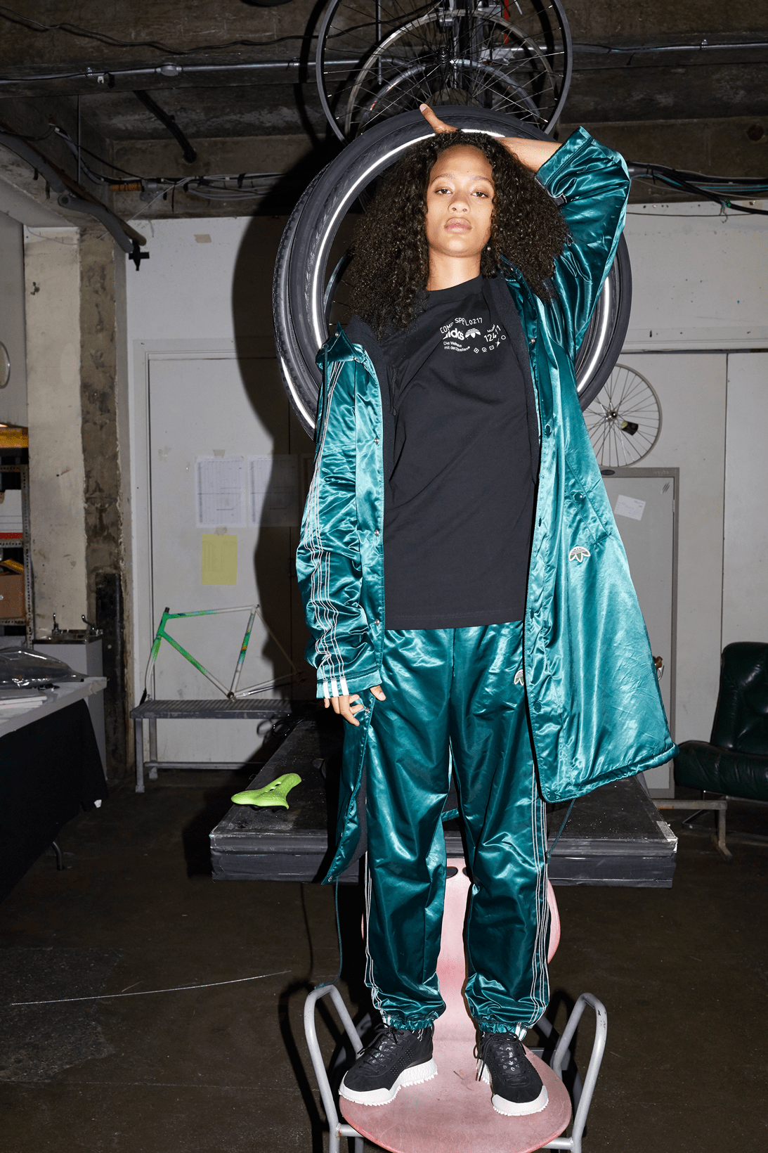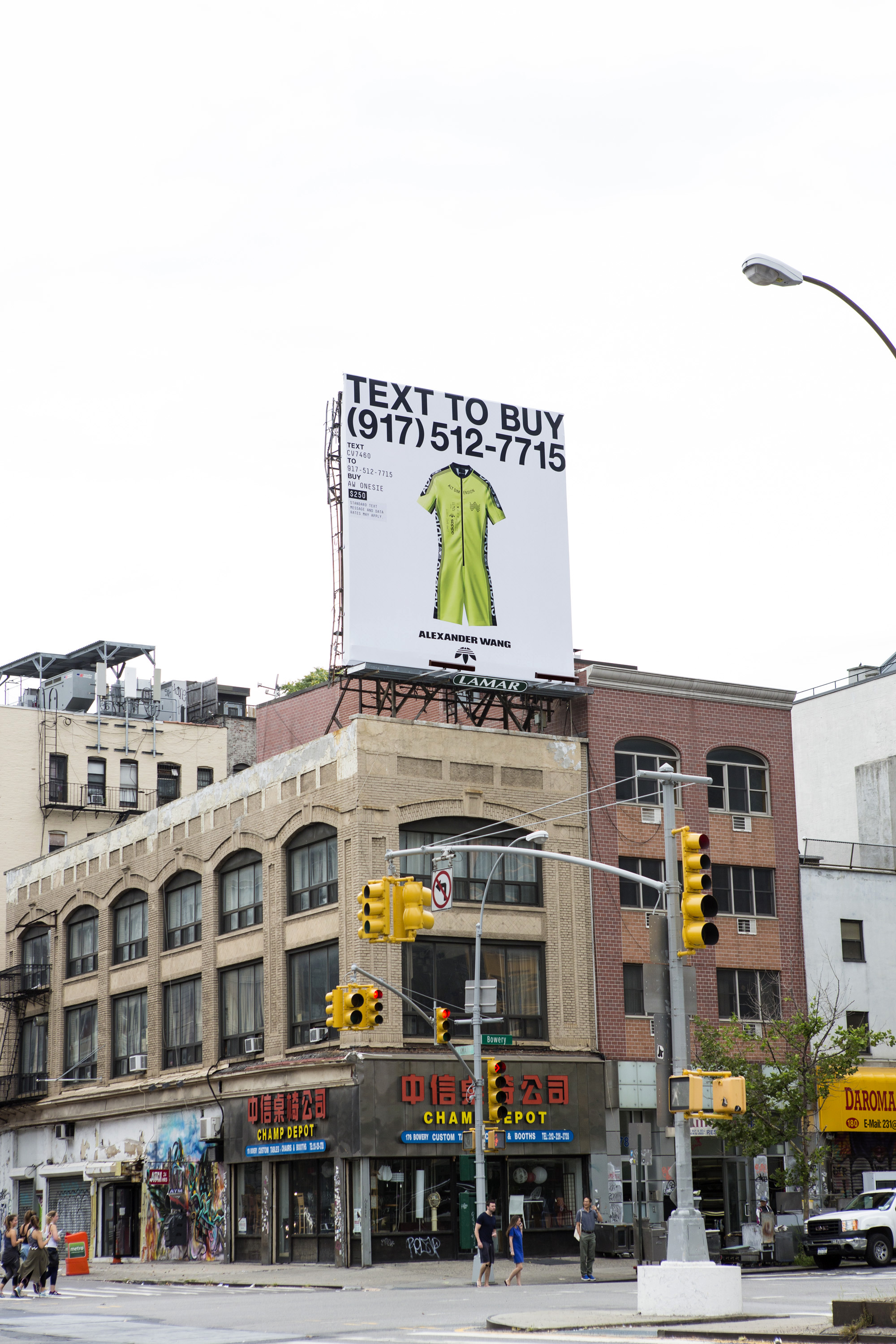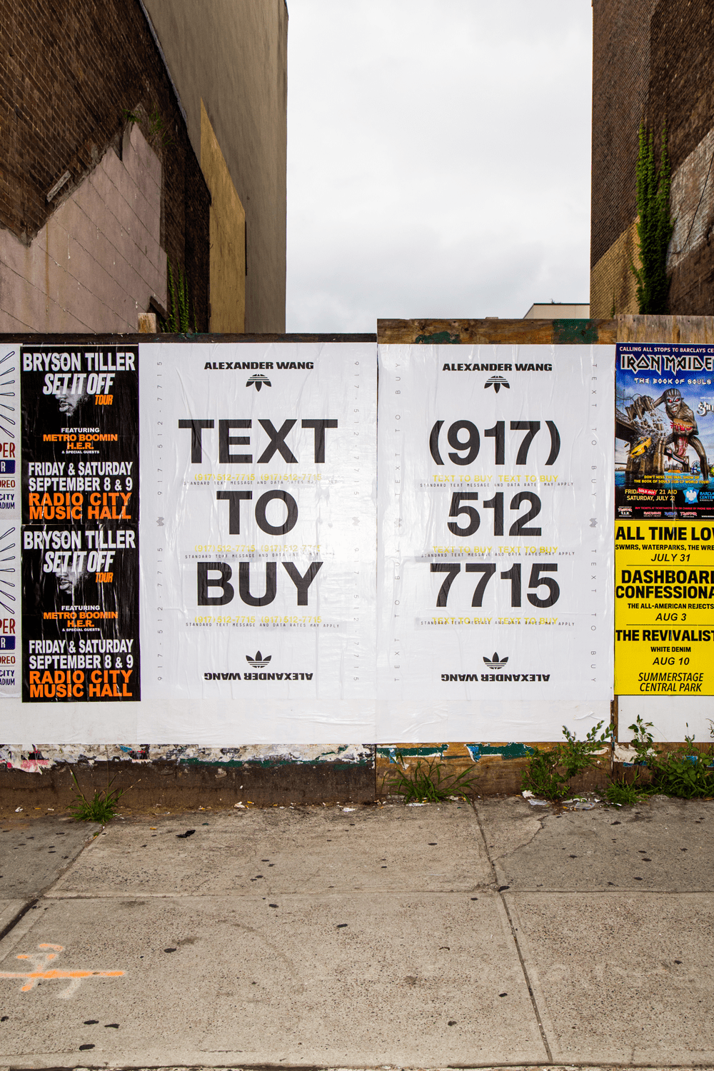 Adidas Originals' Season 2 Alexander Wang collection referenced NYC rave and bike cultures, using the streets of NYC as a canvas for a dealer-style delivery system. The campaign used posters to display a phone number customers could text to place orders via chatbot. Bike messengers outfitted in the collection delivered the goods.